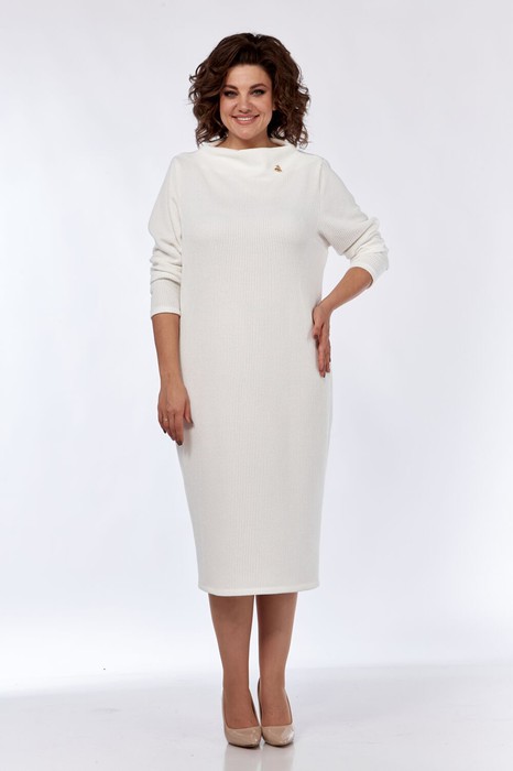Платье женское, полуприлегающего силуэта, по спинке средний шов, заканчивающийся внизу разрезом. Пройма квадратная, рукав втачно одношовный, зауженный к низу. Воротник- цельнокроенная стойка с расширенной горловиной. В качестве отделки используется фурнитура и съемный пояс.