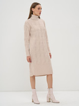 Стильное платье полуприлегающего силуэта  выполнено из трикотажной ткани, контрастные декоративные пуговицы визуально создают красивый акцент. Фасон интересен тем, что модельные линии, как нельзя лучше подчеркивают плавные изгибы женской фигуры. Вырез горловины классический овальный. Рукав втачной, полной длины.