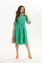 Красивое платье приталенного силуэта. Округлая горловина на внутренней обтачке, по спинке разрез - капелька с застежкой на петлю и пуговицу. Втачной рукав 3/4, оканчивается притачной манжетой. Модель отрезная по линии талии. По талии проложена эластичная резинка, что дополнительно подчеркнет Ваш силуэт. Пояс - кушак из основного материала в комплекте.