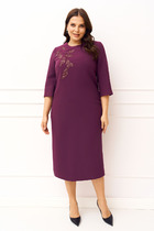 Платье выполнено из трикотажа с блеском. Платье приталенного силуэта, длиной в пол. На спинке средний шов с разрезом. Горловина округлой формы. Плечевой шов заужен. Брошь в комплект не входит.