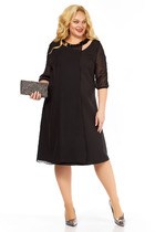 Платье женсоке нарядно-повседневное полуприлегающего силуэта расширенное к низу. Выполнено из трикотажного полотна в сочетании с шифоном. Вырез горловины круглый на обтачке, рукав втачной из шифона по низу на притачной манжете. По низу вставки из шифона с воланами. Декорм платья служат отделочные вставки из шифона и дизайн основной ткани.