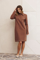 Это платье - настоящий мастхэв на долгий зимний сезон. Комфортное вискозное полотно, минималистический крой, эффектная спинка и длинный рукав. Оно легко вписывается в городской лук и уместно смотрится в деловом стиле. Свободный упрямленный силуэт, втачной покрой, круглая горловина. Полочка с нагрудной вытачкой. спинка с центральной застежкой на петли и пуговицы и плечевой вытачкой. Рукав двухшовный. Длина платья около 110 см.