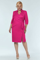 Свободный упрямленный покрой, втачной рукав. Полочка со сложной драпировкой-складкой, имитирующий пояс. Спинка со средним швом.