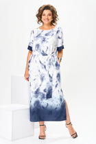 Платье из комфортного вискозного полотна, А-образного силуэта, без рукава, с эффектными отлетными деталями. Полочка с отрезным лифом с вытачкой, изящной драпировкой-поясом, и отлетными деталями на юбке. Спинка отрезная по линии талии, с частичной эластичной кулисой по центру спинки.