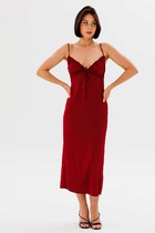 Платье - миди прилегающего силуэта выполнено из струящегося шелк - сатина, на регулируемых бретелях.
