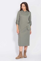 Женское платье полуприлегающего силуэта со спущенной линией плеча и круглым вырезом горловины выполнено из мягкого высококачественного трикотажа с содержанием вискозы. По переду изделия ассиметричный шов и декоративный разрез. По линии талии с одной стороны вставлена резинка и функциональный пояс из ЭКО-кожи, который подчеркивает силуэт. При правильном уходе ткань не скатывается и не деформируется.                                                      Уход:                                                         - стирка при температуре не более 30 градусов, предпочтительно ручная или деликатный режим стиральной машины;                                                          -выкручивать изделие из трикотажа нежелательно, допустимо немного отжать;