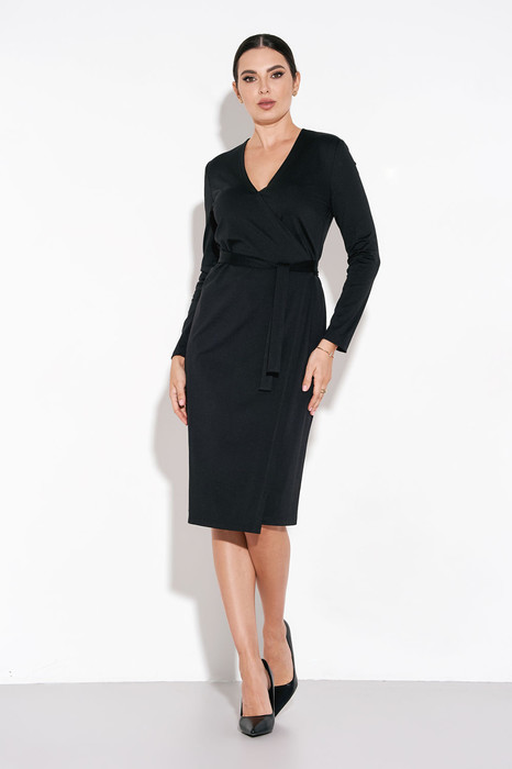 Женское платье на запах длины миди полуприлегающего силуэта со втачными рукавами и V-образным вырезом горловины. Изделие выполнено из мягкого высококачественного полотна с содержанием вискозы. Ткань не скатывается и не деформируется при правильном уходе.