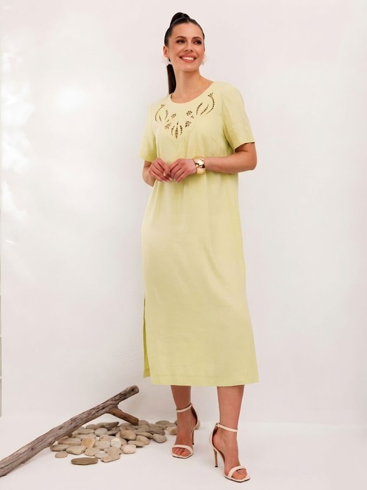 Представляем вам льняное платье с вышивкой "решелье" производства Беларусь больших и средних размеров- идеальный вариант для летнего образа. Это женское платье длиной до середины икры выполнено из льна с вискозой -отличный вариант для летней жары.Сочетание льна, свободног силуэта и большого и средних размеров делает это платье не только стильным, но и комфортным в носке.Легкое и воздушное летнее платье прямого силуэта будет идеальным решением для горячих летних дней. Платье прямого силуэта слегка расширено к низу.Горловина оформлена оконтовкой и украшена дизайнерской вышивкой. В боковых швах имеются разрезы, что очень удобно в носке.
