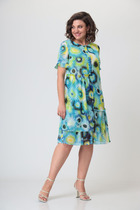 Платье женское трикотажное, полуприлегающего силуэта.По переду рельефе обработан разрез. Спинка с рельефами идущими от плеча и выточками по линии талии. Горловина лодочка. Рукав 3/4 со спущенной линией плеча.