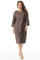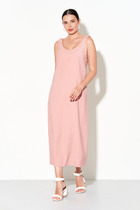 Платье А-образного силуэта с резинкой на талии. Перед с настрочным карманом и клапаном. Горловина V-образной формы. Рукав спущеное плечо с манжетой. В боковых швах карманы.