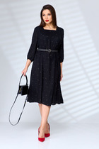 Платье полуприлегающего силуэта, с застежкой на потайную молнию в среднем шве спинки, без воротника, без рукавов, отрезное по линии талии . Лиф переда и спинки с рельефами от верхнего края до талиевого шва, . Спинка со средним швом. Рельефные швы лифа усилены регилином .Нижняя часть переда с двумя асимметричными деталями. Верхняя деталь с четырьмя односторонними складками, выходящими из бокового шва .