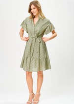 Платье с отрезным присборенным воротником- стойкой, горловина переда с разрезом, застегивающимся на одну навесную петлю и пуговицу. Платье отрезное по линии талии, шов по талии присборен. По низу платья- отрезная кокетка и деталь- гофре. Рукав втачной, длинный, с отрезной манжетой, застегивающейся на одну петлю и пуговицу. Платье со съемным поясом. На боковых швах расположены шлевки для пояса.