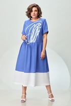 Платье, с застежкой на потайную молнию по среднему шву спинки, без воротника, с фигурным вырезом горловины. Платье отрезное по линии талии. Нижняя часть платья состоит из двух воланов. Лиф переда с рельефами, выходящими из горловины. Лиф спинки со средним швом, рельефами, выходящими из горловины. Рукав втачной, длинный, с отрезной манжетой. Окат и шов притачивания манжеты присборен. Платье со съемным поясом.