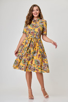 Платье с центральной застежкой на петли и пуговицы, без воротника. По переду и спинке с квадратным вырезом горловины. . По переду с рельефами, выходящими из горловины. Спинка со средним швом, рельефами, выходящими из горловины. Рукав реглан, короткий, с отрезной манжетой. Окат и манжета присборены на резинку.