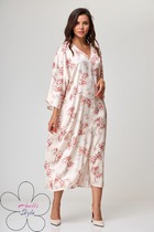 Платье прямого силуэта, свободного кроя, с отрезным воротником- стойкой. Рукав втачной, длинный, с отрезной манжетой. Плечо спущенное. Платье со сьемным поясом.