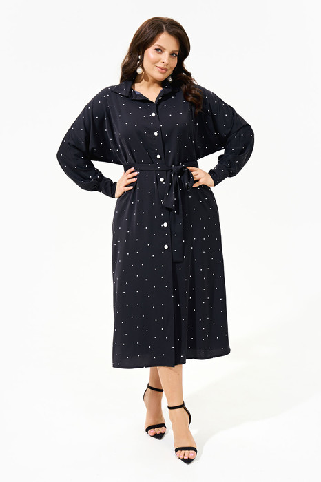 Женское платье-рубашка полуприлегающнго силуэта с цельнокроенными рукавами и акцентной складкой по линии плеча; по низу манжета со сборкой, что делает рукава более пышными; воротник рубашечный; застежка по переду на петли и пуговицы. Платье соответсвует заявленому размеру.