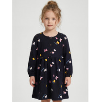 Платье для девочки из футера, свободного силуэта, с длинными втачными рукавами с отверстием для большого пальца. Горловина оформлена широким воротником-"труба". Перед декорирован аппликацией. Низ изделия фигурный.