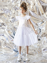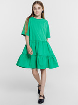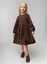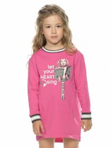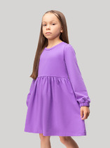 Платье для девочки прямого силуэта, средней длины, с длинными втачными рукавами, с круглым вырезом горловины, отрезное по линии талии. Линия талии занижена. Юбка платья плиссированная.