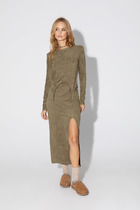 Длина платья по спинке — 129 см, длина плеча + рукав — 36 см.