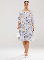 Перед комбинированный на запах с поясом. По переду нагрудные и талиевые вытачки. Горловина обработана воротником шалевого типа. Передняя половина юбки выполнена из ткани-компаньона с радиальным гофрированием. В боковом шве справа потайная молния. В области талии слева расположен притачной пояс из основной ткани, завязывающийся на полукольца. Спинка цельнокроеная с плечевыми и талиевыми вытачками. Рукав 7/8 втачной одношовный.. Цвет материала может отличаться по тону в зависимости от настроек вашего монитора!