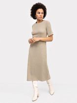 Vilatte Платье из трикотажа в широкий рубчик с разрезами D42.096 кокосовый-т.син
