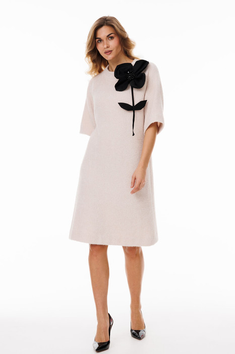 Платье дополнено съемной текстильной брошью в виде цветка черного цвета.