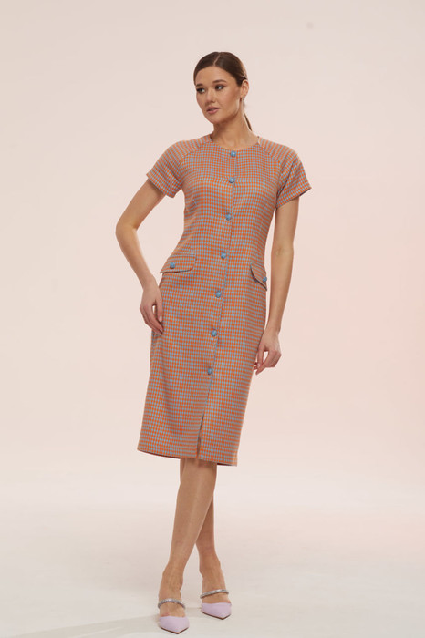 Совместные покупки Курган Женская одежда Платья — Платье Lars Style 754 оранжево-голубая лапка