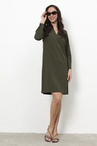 Платье дополняет съемный текстильный пояс на пряжке.