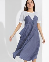 Платье А - силуэта с удлиненным рукавом и воланом по низу.