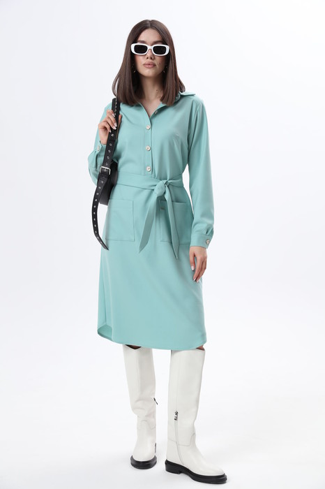 Комфортное платье-рубашка прямого силуэта выполнено из мягкой полушерсти, которая приятна к телу и не колется. Перед с нагрудными вытачками и накладными карманами. Отложной воротник с отрезной стойкой и застежкой-планкой на петли и пуговицы, доходящей до талии. Спинка с притачной кокеткой. Рукав с манжетой на петли и пуговицы. Пояс из основной ткани идёт в комплекте к платью.                                                                                                                                          Рост фотомодели 175 см. Размер у фотомодели – 44. Длина платья по спинке   ,длина рукава     СОВЕТ ОТ СТИЛИСТА: платье-рубашка универсальный и самодостаточный предмет гардероба,который легко застилизовать под повседневный образ,надев платье без пояса и  подобрав грубые ботинки на шнуровке и косуху для бунтарского образа. Или накинуть пальто и обуть ботильноны или высокие сапоги с широким голенищем для классического образа.