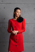 Платье-оверсайз выполнено из костюмной ткани. Рукав втачной на манжете с застёжкой на петлю и пуговицу. Воротник рубашечного кроя, планка на застёжку на петли и пуговицы, отрезная кокетка, карманы и клапаны, по боковым швам прорезные карманы. По спинке кокетка, глубокие складки от кокетки для удобства в носке.