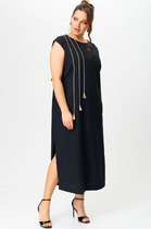 Нарядное платье в черно-голубом цвете — отличный выбор для особых событий. Модель с отрезной талией и резинкой, которая обеспечивает комфорт и подчеркивает фигуру. V-образный вырез украшен нежным воланом, добавляя романтичности. Рукава-крылышки придают образу легкость. Юбка А-силуэта с клиньями имеет спереди рельефные разрезы. В комплекте пояс-шнурок из основной ткани, который подчеркивает талию и завершает образ.