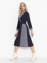 Нарядное платье в черно-бежевом цвете — отличный выбор для особых событий. Модель с отрезной талией и резинкой, которая обеспечивает комфорт и подчеркивает фигуру. V-образный вырез украшен нежным воланом, добавляя романтичности. Рукава-крылышки придают образу легкость. Юбка А-силуэта с клиньями имеет спереди рельефные разрезы. В комплекте пояс-шнурок из основной ткани, который подчеркивает талию и завершает образ.