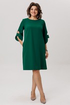 Яркое летнее платье из натуральной смесовой ткани. Платье свободного прямого кроя с коротким цельнокроеным рукавом. Горловина с V- образом, слегка смещенным, вырезом. Обработана пришивным элементом из яркого штапеля (100% вискоза) в виде крыльев бабочки. В боковых швах расположены удобные карманы. Спереди слева расположен разрез. Длина платья от плечевого шва 129см. Длина рукава 15см.