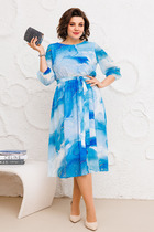 Нарядное двухслойное платье на облегченной подкладке — идеально подойдёт для любых торжеств. Интересная расцветка, легкий и струящийся шифон, а завязки на рукавах — сделают изделие еще более выразительным. Платье с округлой горловиной, длина ниже колена и клешеный трапециевидный крой — подчеркнут Ваши достоинства и не будет сковывать движения. Платье прекрасно дополняется различными аксессуарами. Длина изделия от горловины 105 см (+-1 см), длина рукава 54 см. Изделие подойдет на рост 170 см.