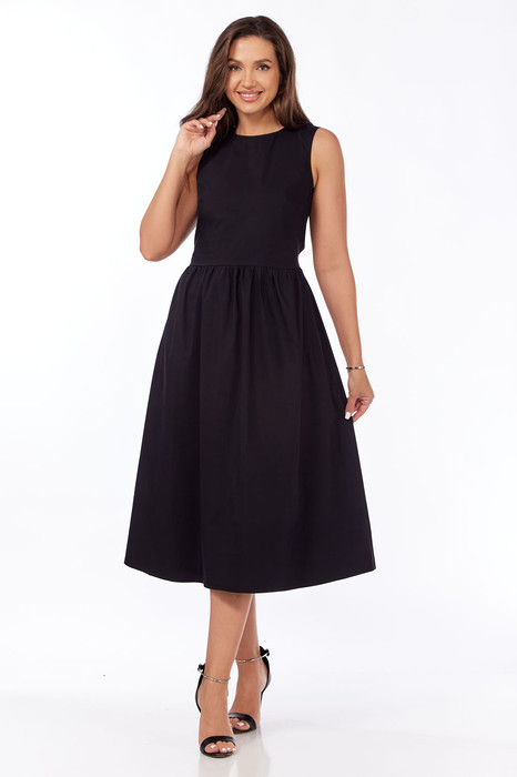 Летнее платье длины миди оригинального кроя. Изделие выполнено из натуральной хлопковой ткани. Лиф и спинка отрезные. Вырез горловины по переду круглый, по спинке — завязка из обтачных деталей спинки. Спинка открытая. Платье без рукава, низ платья — притачная юбка со сборкой, по спинке на резинке. Имеется два кармана в боковых швах. Платье может сочетаться как с кедами, босоножками, так и туфлями. Данная модель отличное решение для будней и для торжеств. Длина платья 123 (± 1 см). Изделие подойдет на рост 170 см.