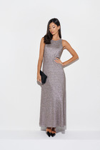 Изящное, удлинённое, нарядное платье из вечерней коллекции. Художественный и конструктивный прием, сочетания дизайна кружева и шифона, пропорции, силуэт, отличный вариант для создания эффектного образа. Нарядное платье выполнено из кружева и шифона. В качестве подкладки на юбке используется атлас, что придает юбке мерцающий эффект. Лиф платья состоит из гипюра наложенного на атлас, по линии талии отрезное. На подрез настрочено вырезное кружево с стразами. Рукав 3/4.Спинка из гипюра до линии талии, со средним швом и рельефами, по линии талии отрезное. Потайная молния в среднем шве.Женственность, исходящая от вашего образа в этом платье, поможет стать центром внимания и произвести незабываемое впечатление.
