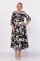 Эффектное женское платье прилегающего силуэта в области талии, выполнено из шифона. Лиф платья отрезной по линии талии, выполнен в стиле корсета. Лиф проклеен дублирином и поставлен на подкладку, также дублированную, что создает плотный лиф и хорошо прилегая к телу, скрывает недостатки фигуры, утягивая ее. Лиф платья имеет несколько рельефов, которые декорированы кантом со стразами. Юбка платья имеет расклешенный силуэт, спинка идентична полочке, со средним швом, в боковом шве потайная молния. Также на платье обработан рукав расклешенного силуэта, из основной ткани. Эффектное, роскошное платье для обладательниц роскошных форм!