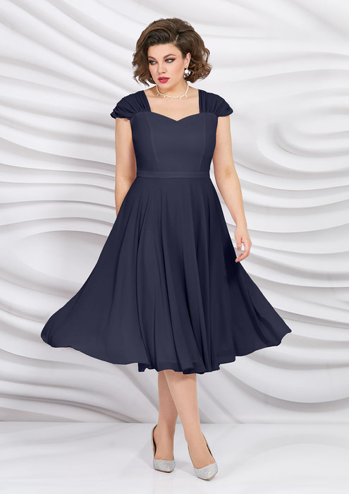 Нарядное женское платье полу-прилегающего силуэта, выполнено из шифона с блеском. Лиф платья отрезной по линии талии, из шифона на подкладке, с рельефами и втачным поясом. Горловина фигурная, кокетка платья присборена по плечевому и плавно переходит в небольшой рукав, кокетка декорирована стразами. Юбка платья расклешенная, средней длины, спинка идентична полочке, лиф отрезной по линии талии, со средним швом и рельефами, в среднем шве потайная молния. Нарядное платье с роскошной юбкой и эффектным декором прекрасно подойдет для торжественных случаев!