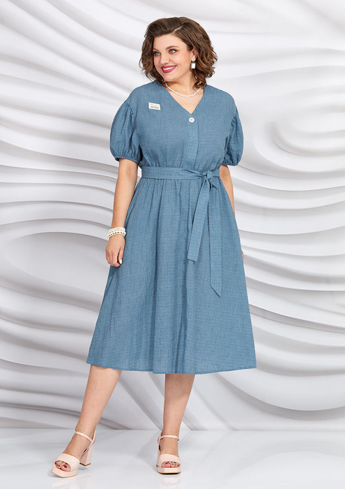 Универсальное, летнее платье полу-прилегающего силуэта, выполнено из хлопка с ненавязчим рисунком переплетения. Горловина V-образной формы, на обтачке, по линии талии отрезное, на резинке. Юбка платья расклешенная, в боковых швах карманы, рукав втачной, на спущенной пройме, присборен по окату и по низу на резинку. Спинка идентична полочке, отрезная по линии талии, на резинке, платье на хлопковой подкладке. Легкое, стильное и комфортное платье станет незаменимым выбором на каждый день!