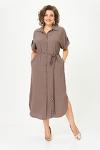 Эффектное платье для обладательниц роскошных форм, свободного покроя, выполнено из шифона, на трикотажной подкладке. Горловина платья округлой формы, на обтачке, на переднем полотнище выполнены вертикальные подрезы с воланами. Спинка со средним швом, рукав покроя реглан, расклешенного покроя, по горловине декор в виде съемного цветка. Легкое, нарядное платье отличный вариант для любительниц комфортных и изящных нарядов!