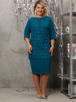 Платье женское приталенного силуэта, отрезное по линии талии. По лифу переда и спинки расположены рельефы. Юбка расклешенная с разрезом по переду. Застежка на потайную тесьму-молнию в среднем шве. Дополнительной застежкой служит шнуровка корсетного типа по спинке. Рукава съемные, держатся на резинке.