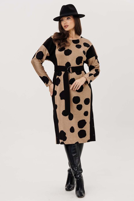 Совместные покупки Курган Женская одежда Платья — Платье MisLana 1238 бежевый с черными кругами