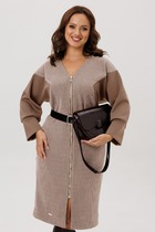 Нарядное платье, выполненное из крепа на трикотажной основе с тоненькой нитью люреска (тянется). Платье А-силуэта. Спинка со средним швом. Горловина округлой формы, обработана окантовкой. Рукава втачные, одношовные, расширенные к низу. Платье декорировано съемным цветком на булавке (цветок может отличаться от фото). Платье без подкладки.