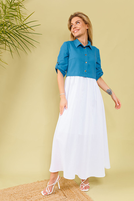 Совместные покупки Курган Женская одежда Платья — Платье NIKVA н365-5 аквамарин+молоко