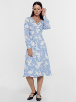 Платье женское прилегающего силуэта, выполнено из трикотажного полотна «велюр». Модель асимметричная, без подкладки, с плечевыми накладками. Перед платья состоит из двух частей перекрученных между собой по линии талии и скрепленных за запах. Перекрут деталей переда образует драпировку. На спинке расположены талиевые вытачки, в среднем шве – застежка на тесьму-«молнию» (50 см). Горловина округлой формы, углубленная спереди. Рукав длинный, втачной. Длина платья – 132 см, длина рукава – 57 см.