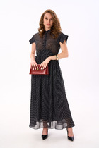 Длинное вечернее платье из элегантной сетки-гофре с нитью люрекс мерцает при каждом движении, словно улавливая в себе отблески огней. Этот деликатный блеск смотрится дорого и изысканно, создавая неповторимый аристократичный образ.