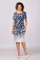 Полуприлегающий силуэт аккуратно подчеркивает фигуру, не сковывая движений, а продуманные вытачки по переду и спинке создают красивую посадку, особенно для женщин с формами. Вертикальный фигурный подрез по центру визуально вытягивает силуэт и делает образ стройнее. Контрастная планка с декоративными пуговицами добавляет изящный акцент и эффектно имитирует застежку, придавая платью стильный и ухоженный вид.