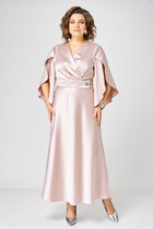 Элегантное трикотажное платье прямого кроя с разрезом по низу переда. Платье имеет слегка спущенную линию плеча. Горловина с женственным вырезом и широким воротником.