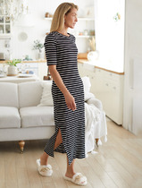 Vilatte Платье из трикотажа в широкий рубчик с разрезами D42.096 черный-белый